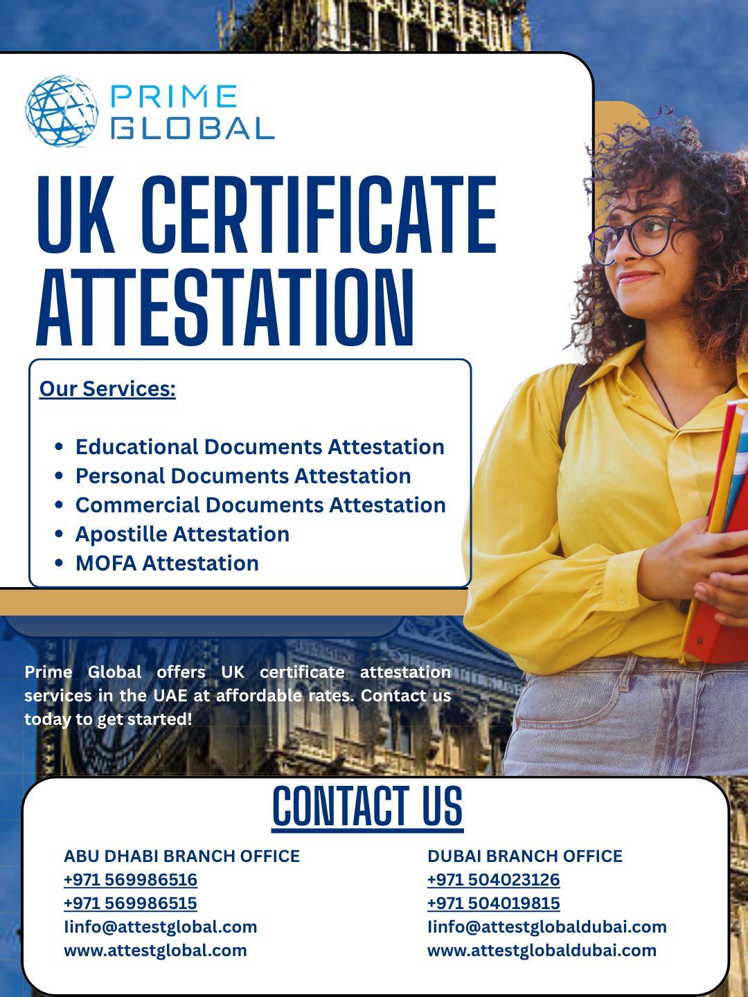 Prime Global Attestation offers fast and reliable UK certificate attestation services in the UAE.