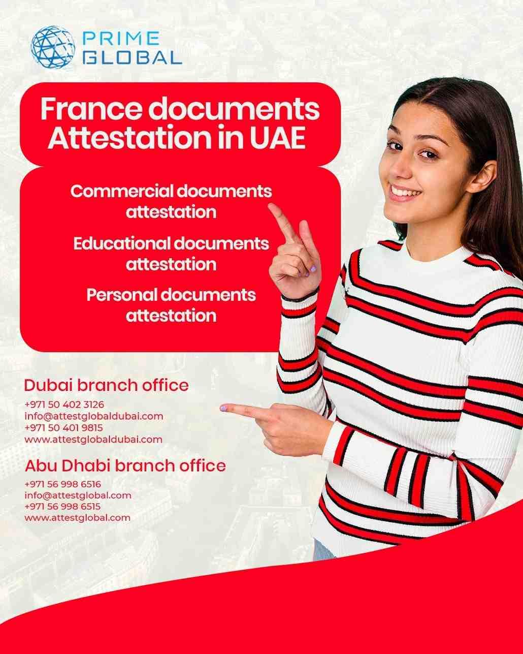 Are you from France and planning to work, study, or settle in the UAE? Prime Global Attestation in Abu Dhabi is your trusted partner for fast and reliable attestation and apostille services. We handle documents from France and over 110 countries, including educational, personal, and commercial certificates such as degrees, diplomas, marriage, and birth certificates.